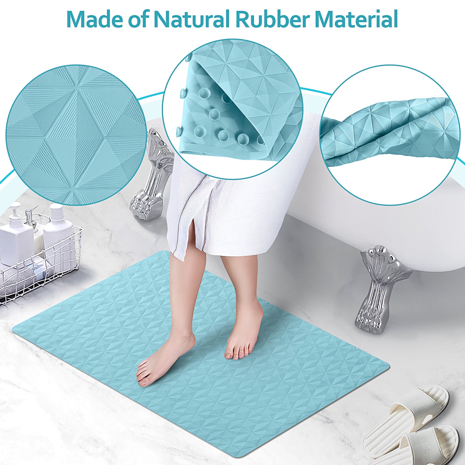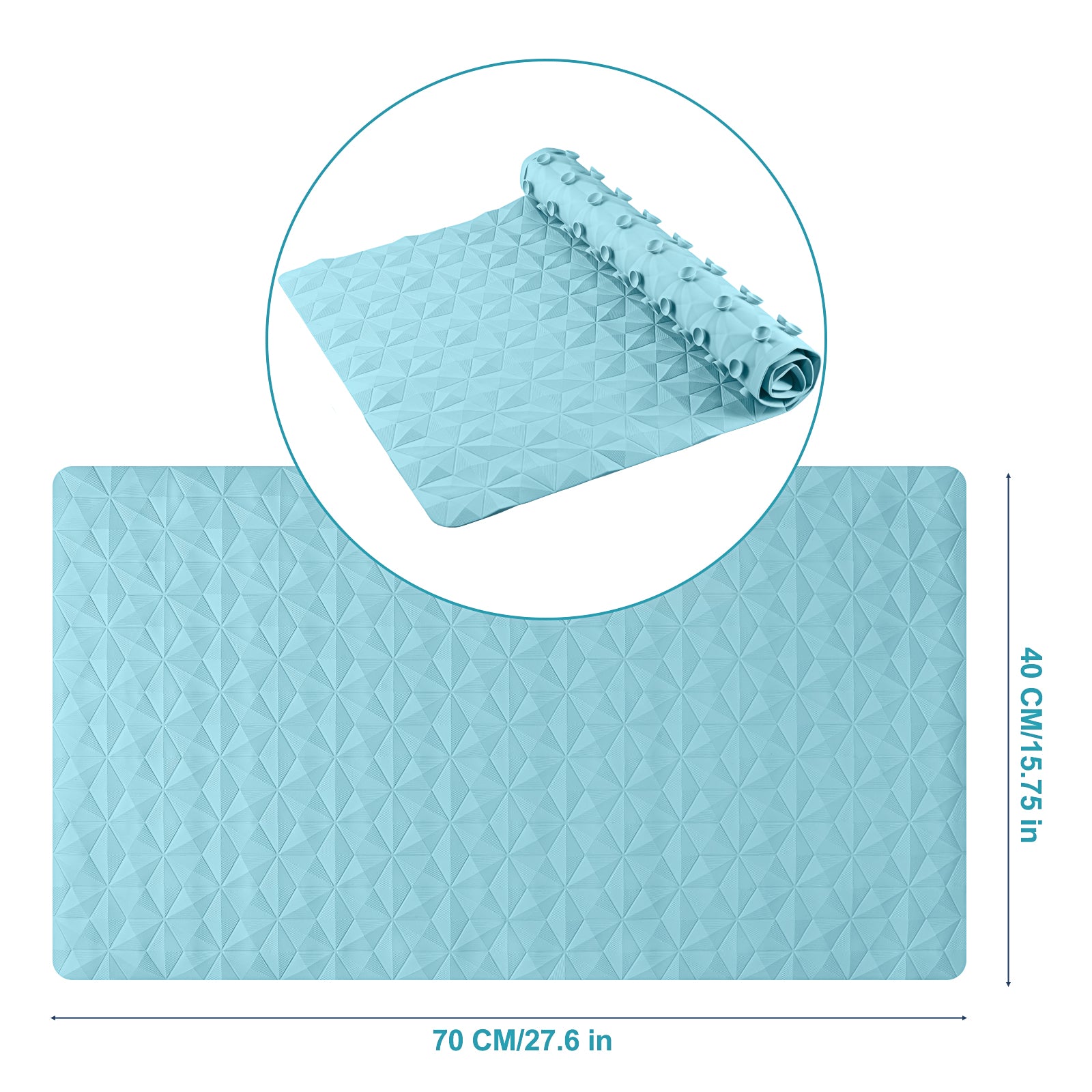 Bathtub Mat Non Slip - Natural Rubber Bath Tub Shower Safety Mat - 16 x 28 Inch Shower Mats with Suction Cups - Delicate Diamond Pattern - Softer - BPA Free - Machine Washable - Elegant Blue