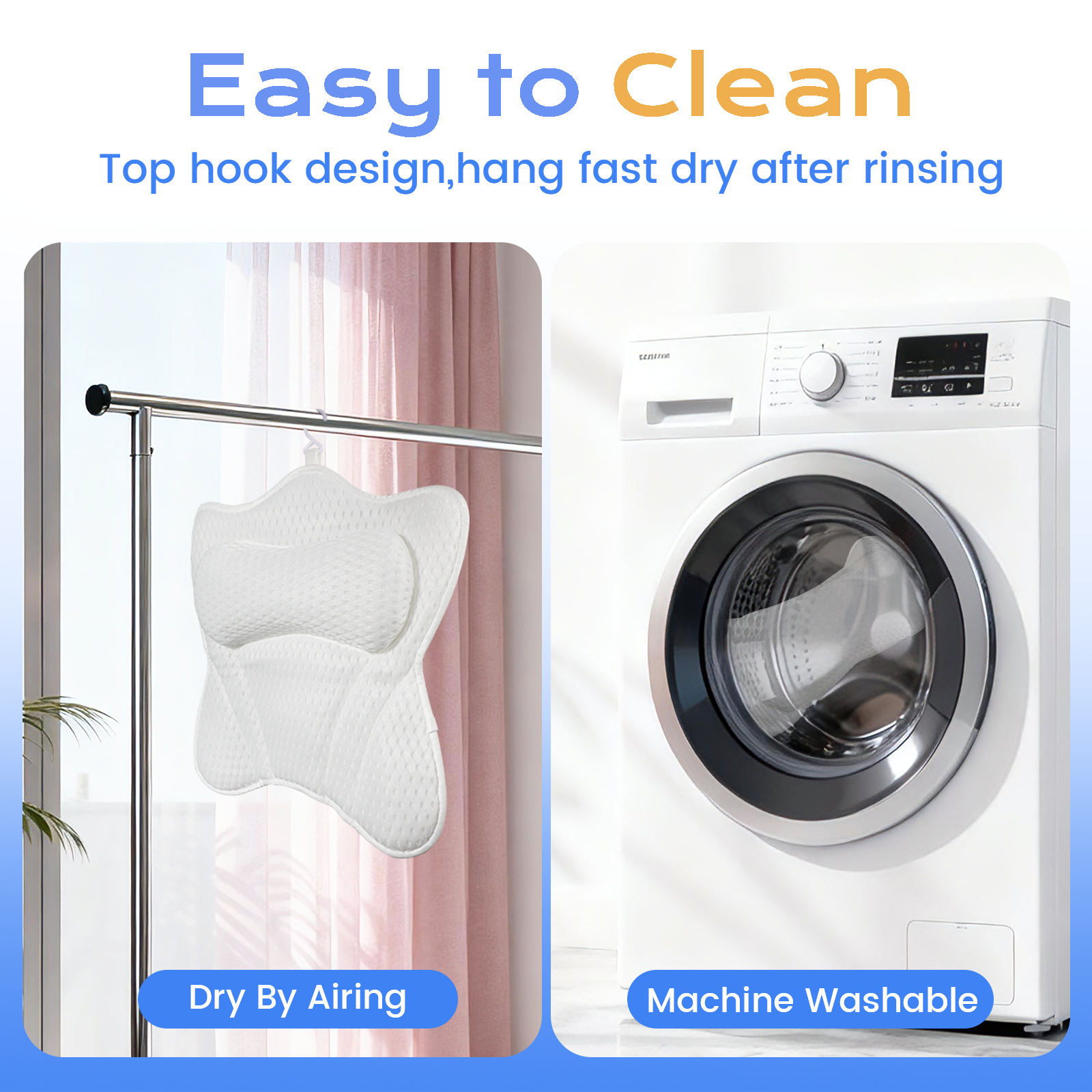 - Easy Machine Wash and Fast Dry: Keeping your bath tub pillow spick-and-span is a cinch. It’s crafted to be machine washable, so you can simply chuck it in with your regular laundry. Thanks to the ingenious 4D mesh fabric, it dries super quickly, allowing for prompt reuse