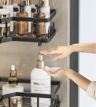2.Equipped with removable hooks and slotted storage baskets. The shower organizer corner includes adjustable hooks for custom spacing and easy access. Tier height is also adjustable to fit tall and short bottles, keeping everything organized, within reach, and clutter-free.